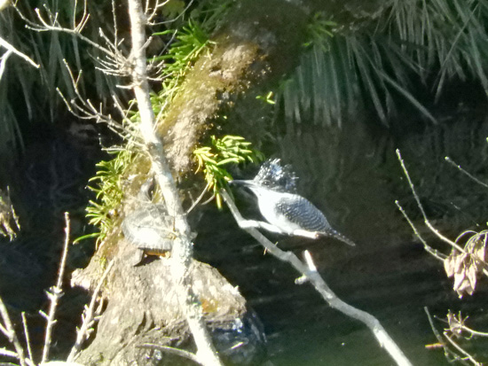 かすかに甘みのあるアケビを先日食べたが、その種を元の山に返そうとカミさんが出かけていた。 今日は日曜日で私はNHKの将棋番組を楽しんでいたが、そこへカミさんが上ずった声で「ヤマセミがいる。早く来い。」との電話。 場所は毎年春に花見をする公園の池だと言う。