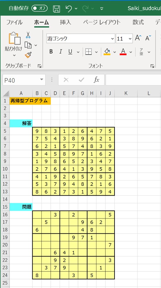 Saiki_Sudoku (ファイル名 Saiki_Sudoku.xlsm)