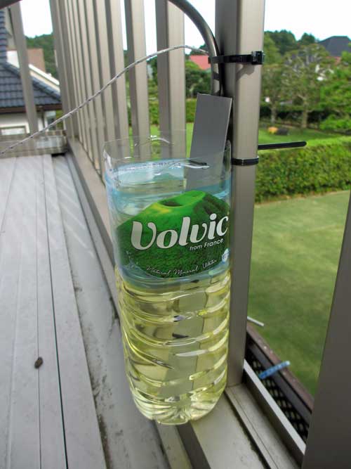 ボルビックの1.5Lペットボトルにサラダオイルを入れ、終端抵抗を取り付けたアルミL金具をどぶ漬けし、倒れないように結束バンドで縛ったところです。SWRを測ってみたら、20Mhz以下で1.01、30Mhzで1.05と空気中でもオイル中でもよい値でした。 スライダックを50Vにして測定を始めたら温度上昇がとても速く、慌てて電圧を下げて実験しました。